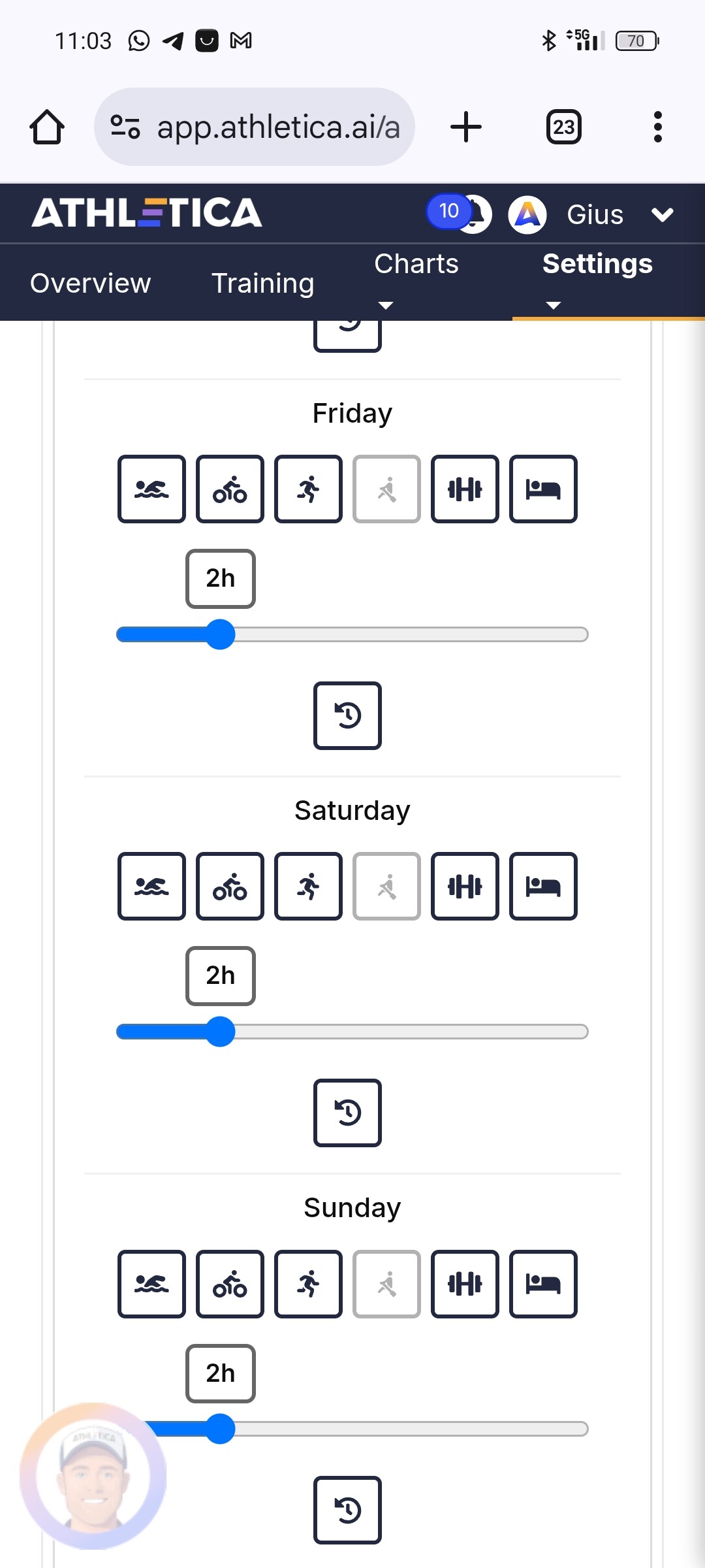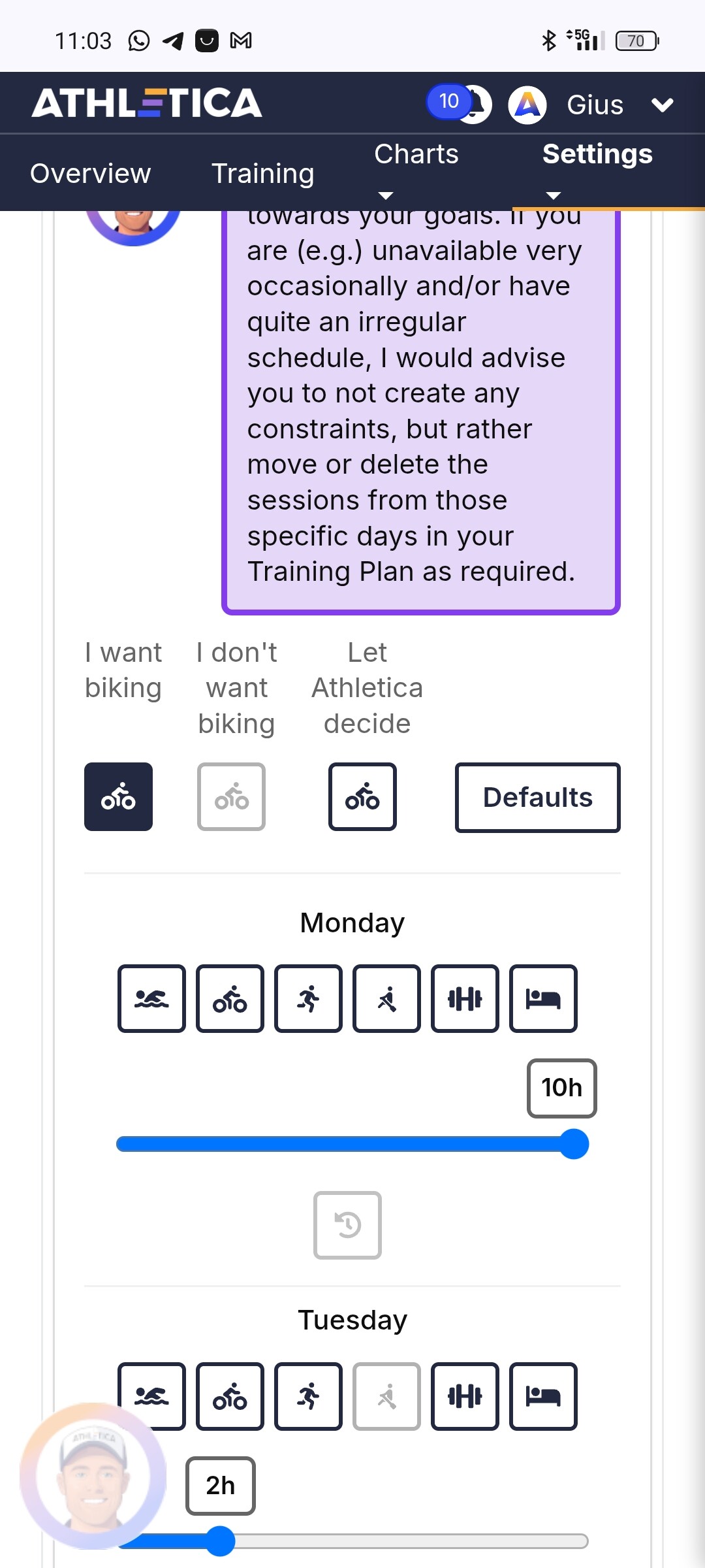 I wanted to echo a comment I think someone made previously - it appears there’s no ability to set per-session or per-workout training time limits each day in the new version, only total daily training hours. If I’m missing that, please let me know. The old version let you do this. I don’t have the flexibility to let Athletica schedule a 2 hour bike on a weekday (like the 2h22m session it wants me to do today). I can, however, handle two 60 - 75 minute sessions (e.g., before work, lunch break, after work). I expect many working athletes have this same constraint. @Prof, if I’m correct and the new version doesn’t implement this, is it feasible to bring it back? If I was using a human coach I’d expect I would explain these scheduling constraints and the coach would program around that, so I’d hope Athletica could do the same? Many thanks for all your work on the platform.