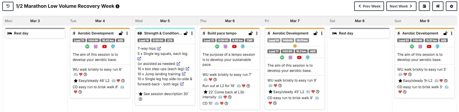 I’m still juggling with different settings to suit the plan to all my needs. But all in all it’s sorted out now, I think. Newly generated plans include the rest day on Tuesday, but look different from the last weeks.