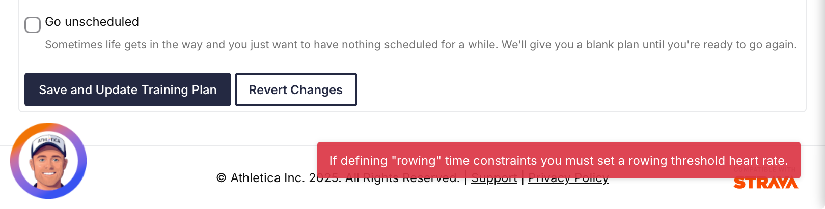 Finally, I set bogus values for swim and row speed and HR (since, again, I never expect to be prescribed these modalities). That finally let me save the plan. Will report back with how that looks once it generates.