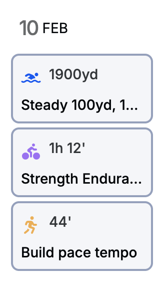 Have I chosen a setting that makes Tuesdays particularly challenging or is it like this for everyone? I always seem to have a swim, bike, and run. Even with a 2.5 hour brick, Saturdays are actually easier.