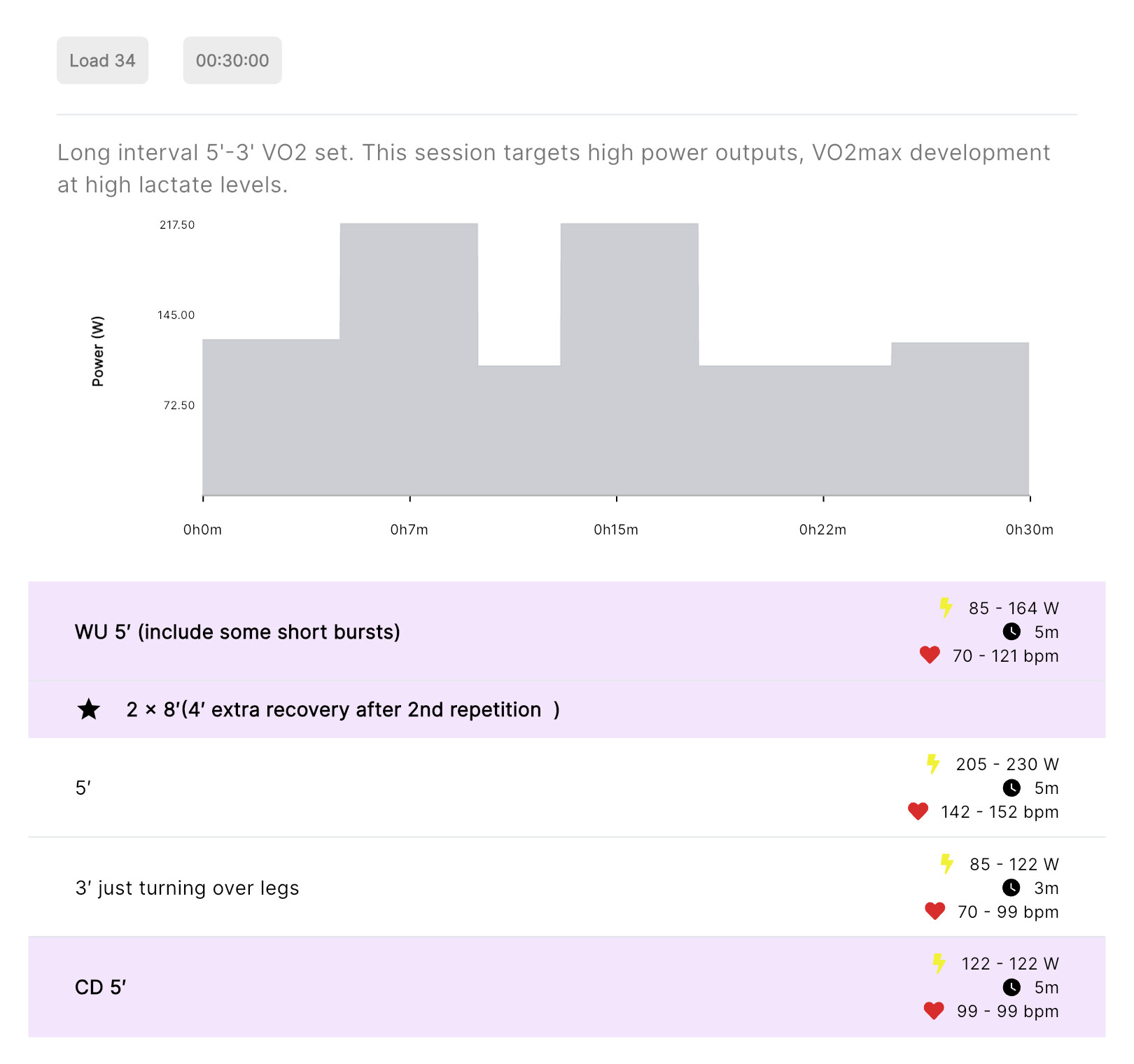If this is not reflected in your training zones updating there might be a problem (issue, bug, sync, updateā¦) that we are not aware of. Your 30:30 are prescribed in the middle of Z6. Erg mode will impose 392 because halfway between 357 (MAP) and 428 (bottom Z7). HIIT science suggest 30:30 to be at 105% MAP, so you could consider based on this number that 374 would be already in Z6 prompting the adaptations targeted by this type of HIIT. However, as you can see, if only the last 6 weeks are accounted for, MAP declined to 259 W. Again, we need to check internally if your threshold is still the same for some tech reasons.