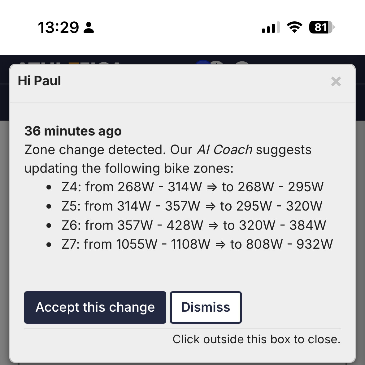 Ok so today i got a request to accept new power zones and there are new updates on the threshold power chart for Aug, sept,oct and nov which haven’t reduced since July which doesnt feel right. Was something triggered on the back end?