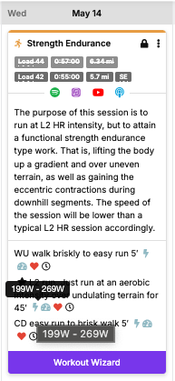 I noticed that my planned Strength Endurance session today had different target ranges than in the past. Specifically that they now go from Z2 to Z3b.