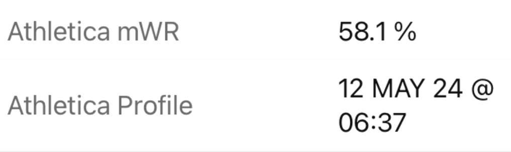 As I’m reading it in my session my mWkR was 10% but I’m pretty sure that I never saw that in my Garmin Device.