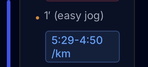 Hi, I am a bit confused about the instructions on recovery pace for some intervals. For example, in MIT 12x2/1 the 1min recovery is tagged as “Easy jog” but the prescribed pace is not easy jog indeed. For me (4:09/km threshold pace) the “easy jog” pace prescribed is 5:29 to 4:50/km (screenshot attached) which is zone 2 touching in zone 3. I’d call it rather a float recovery. Easy jog would be at least over 6:00/km. So what’s the optimal recovery pace?