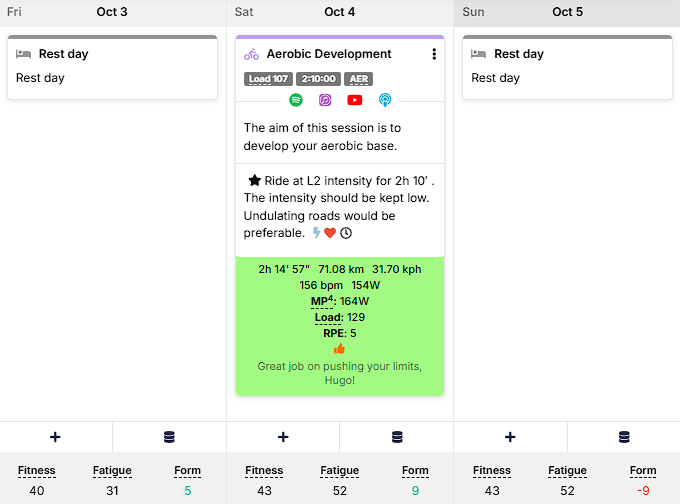 In short: in Athletica, Form is your start-of-day freshness and Fatigue is your end-of-day load. When you did your session on Saturday, your fatigue jumps. But your Form for Saturday was already set that morning (after midnight). The drop in Form shows up on Sunday (the first moment you’d actualyl feel the impact of your session starting the day.
