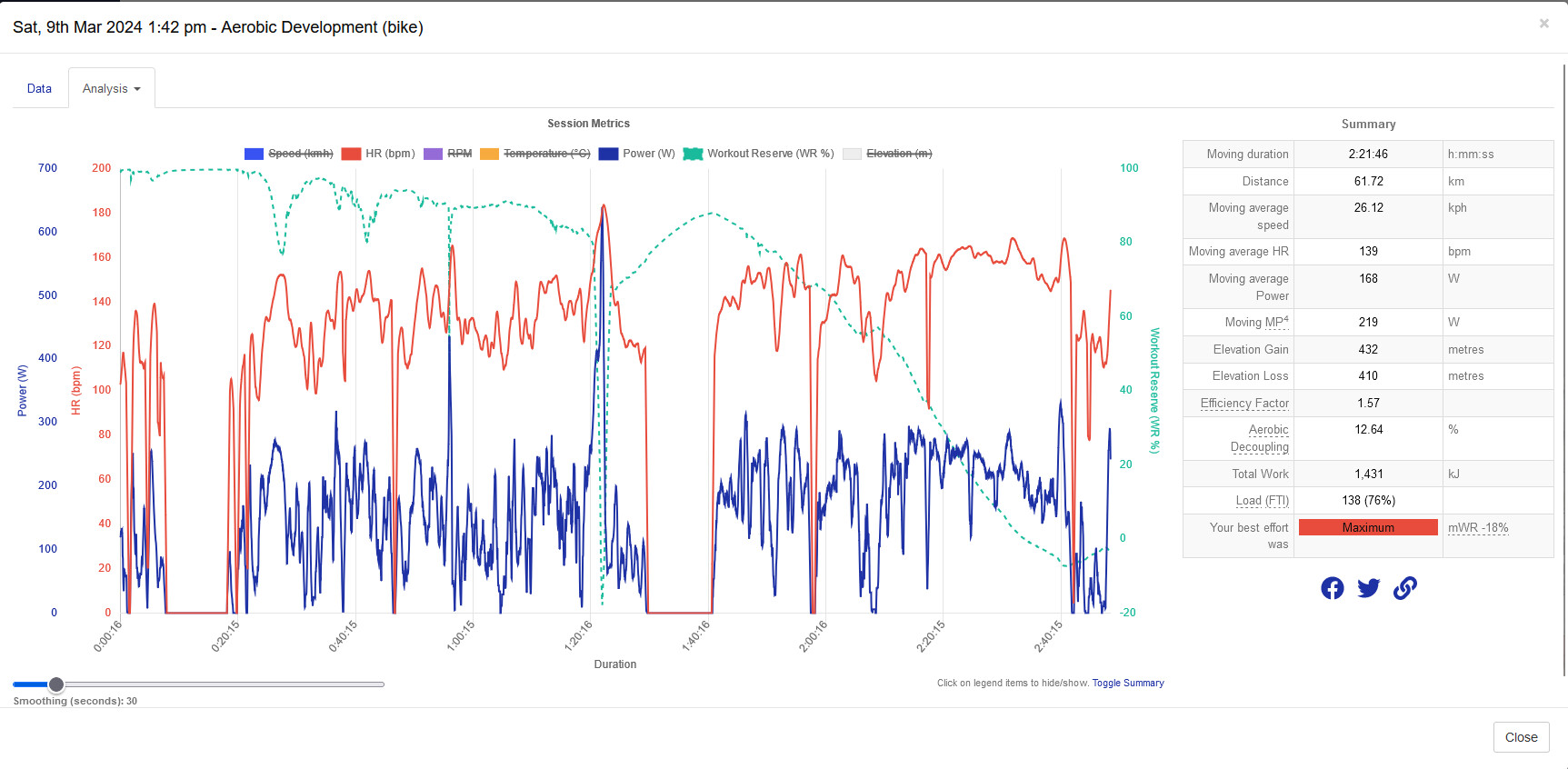 I’ve noted that you’ve got a couple of roughly 11 minute windows where you appear to be stopped, and when you resume your power meter has disconnected from your Garmin device. You also have an additional 5 minutes across your workout where the power meter is disconnected. Did you do anything with your power meter or Garmin device during this period, press any buttons, turn anything off etc?