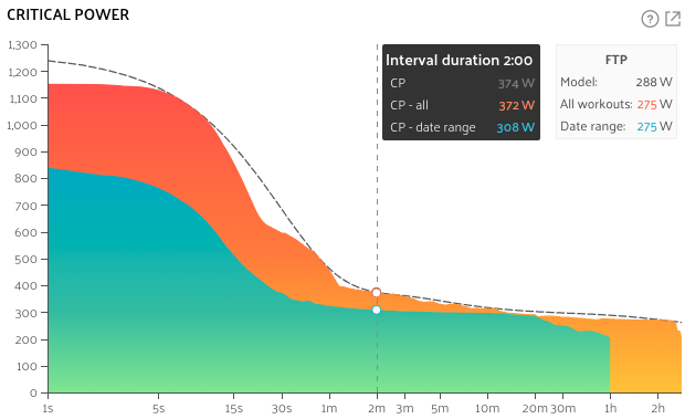 My current critical power from Stryd is 319 watts. But my athletica Running Power Profile has a CP of 296 watts. As both profiles are fed with the same data, the difference between the CPs probably lies in the different definitions what CP is.