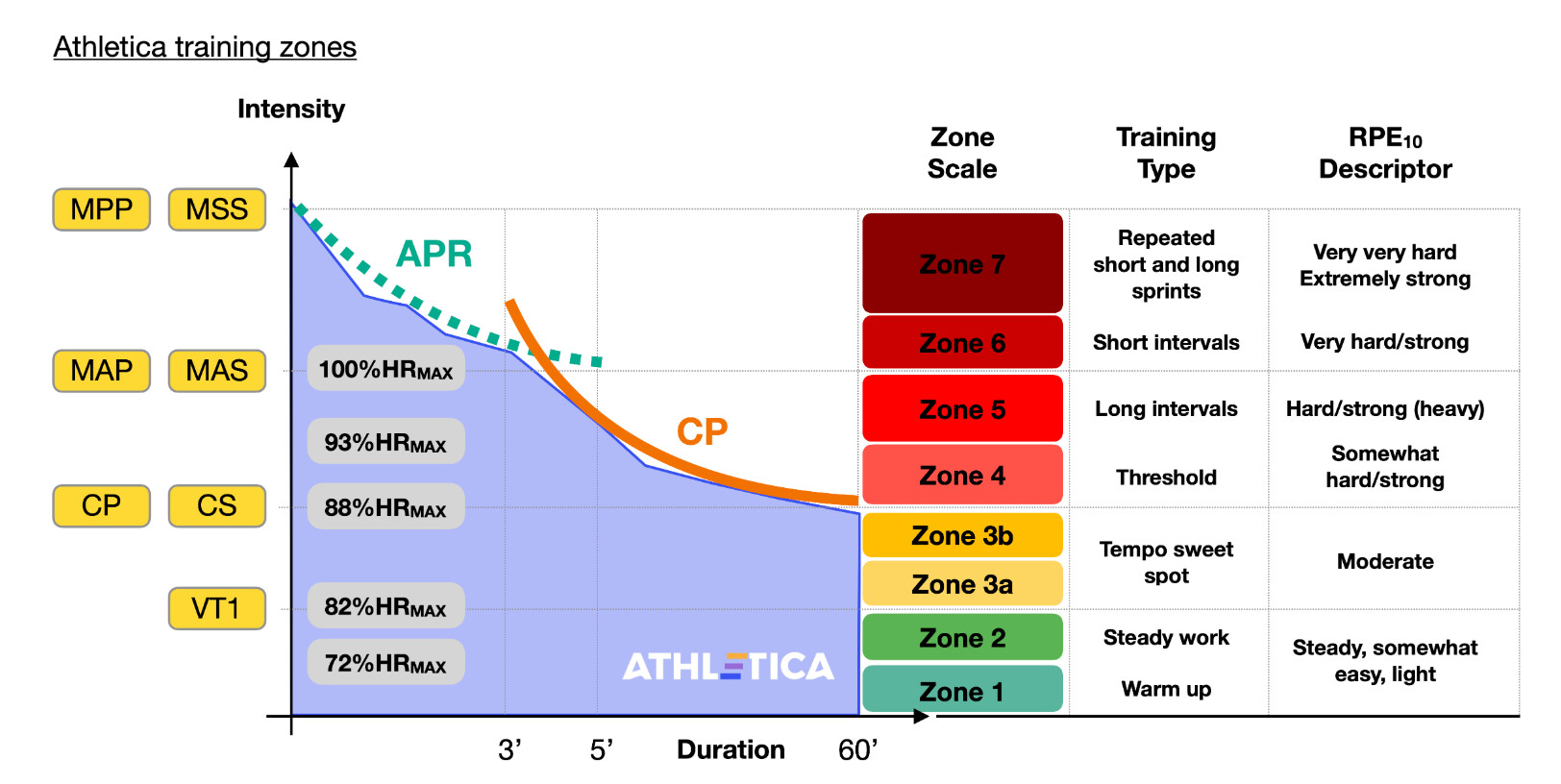 None of this is to say that this negatively affects training. Athletica’s use of a separate model (APR) for high intensity ensures high intensity sessions are prescribed correctly, and basing aerobic work on a lower value probably is beneficial in terms of keeping easy sessions easy. But the naming convention for anyone who’s spent time reading about this stuff is confusing.