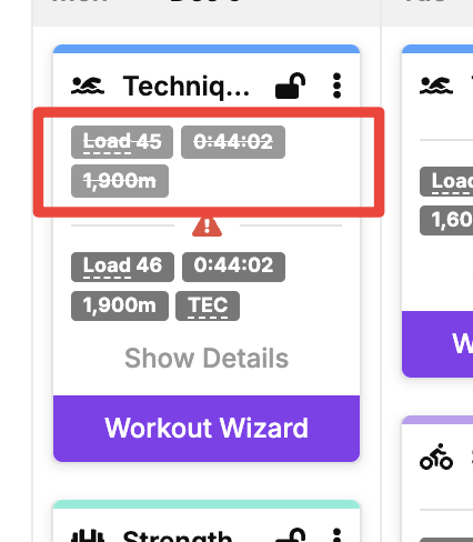 The plan adapts to what gets or doesn’t get done. So once your plan set up is complete and you start ticking off workouts as planned, you’ll see less adapted workouts.