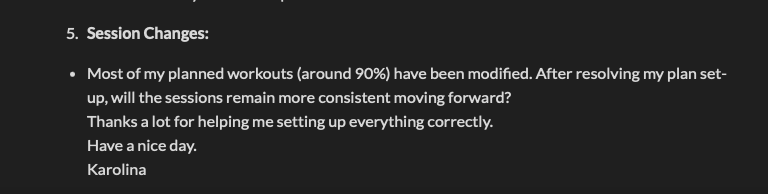 Most of my planned workouts (around 90%) have been modified. After resolving my plan set-up, will the sessions remain more consistent moving forward?