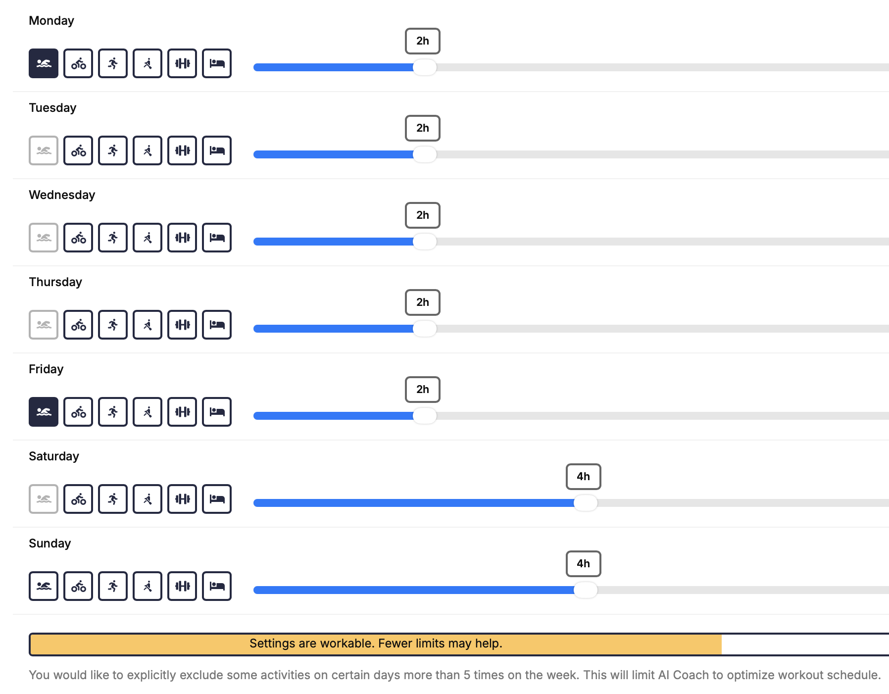 That last point is where I’m struggling: I want to tell Athletica, “I dedicate Tuesday and Thursday to strength training—please adapt the plan around that.”