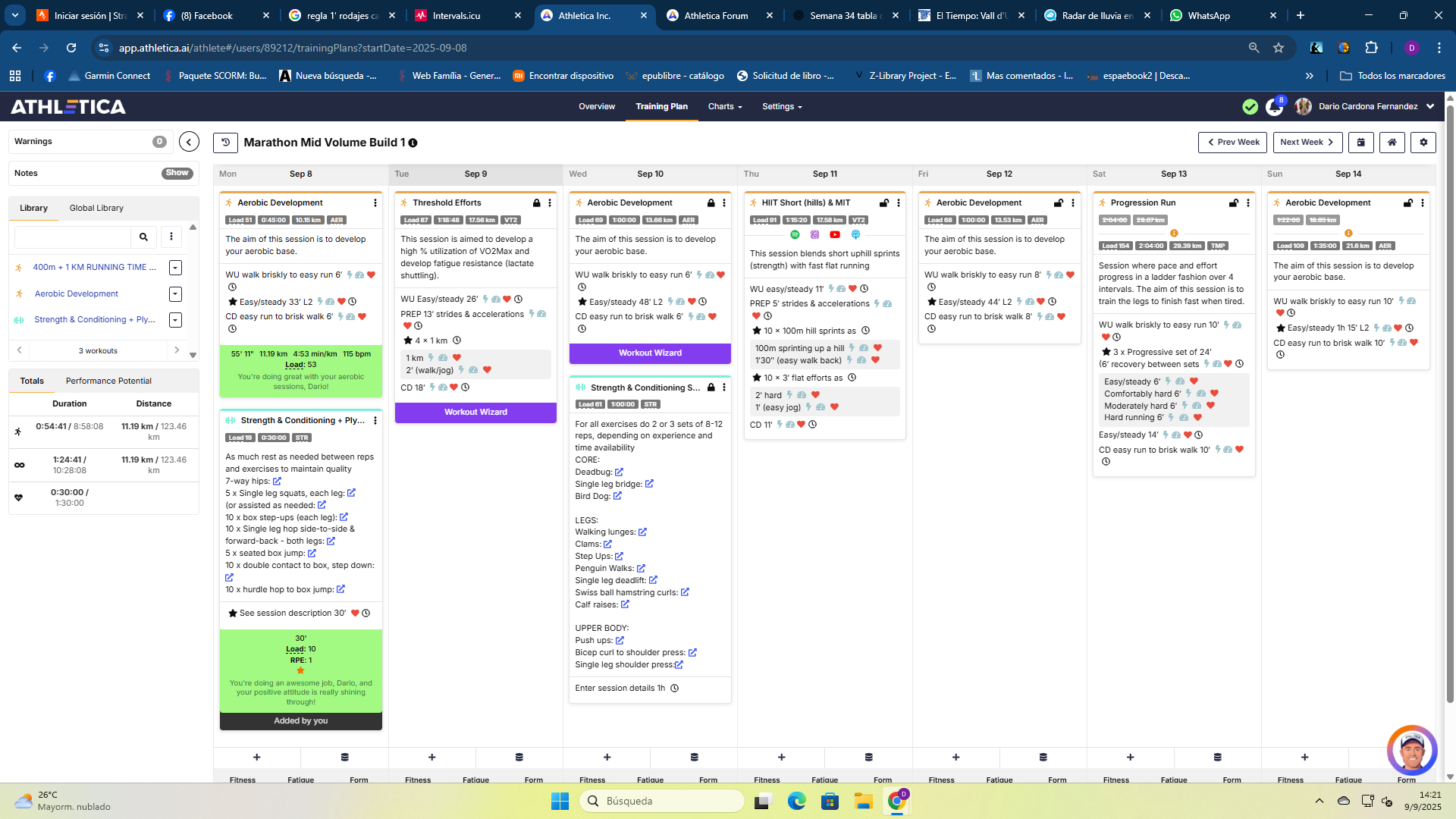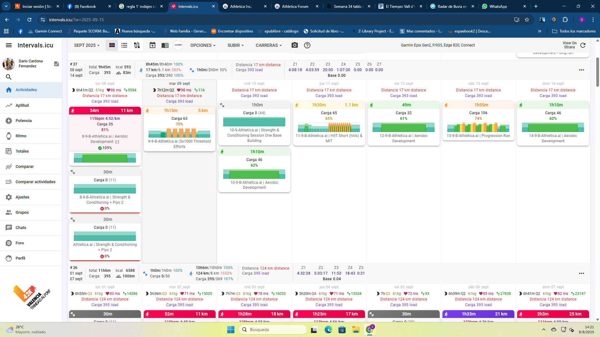 EJEMPLO: En Athletica 4x1000 mtrs y en INTERVALS.ICU. indica 6x1000.