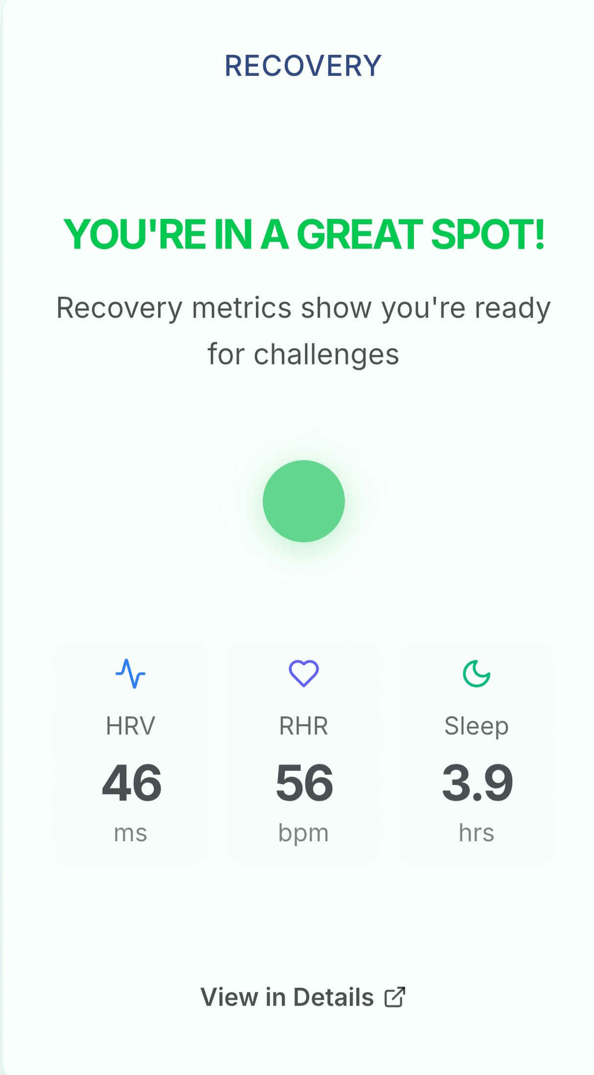 I’m a little surprised to be in the green with 4 hours of sleep, yesterday 5 hours of sleep, so yes my metrics are good (HRV and RHR) but am I really ready for challenges?