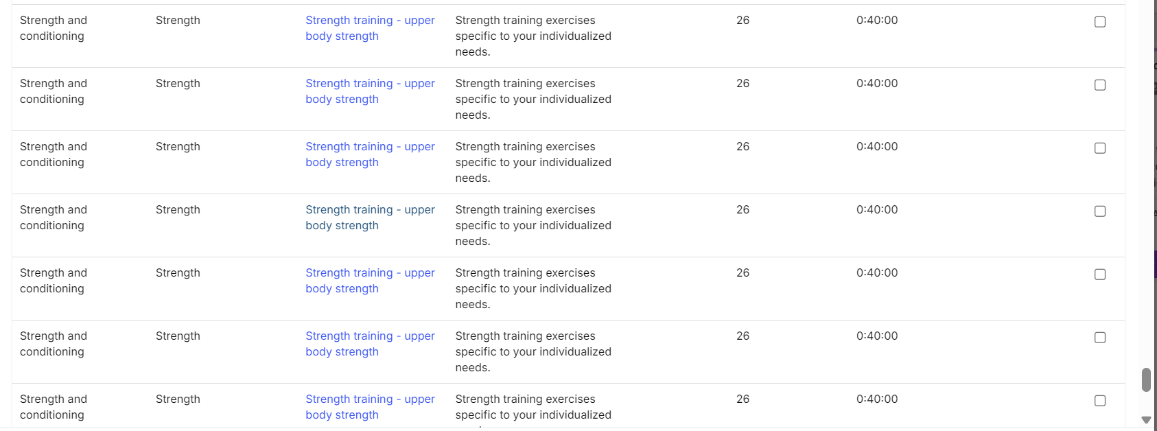 I tried to find some strength workouts from the global library. It’s huge. However it seems that it contains a large number of duplicate workouts which makes it very tedious to browse the workouts to find the one I like. I’ve added a screenshot.