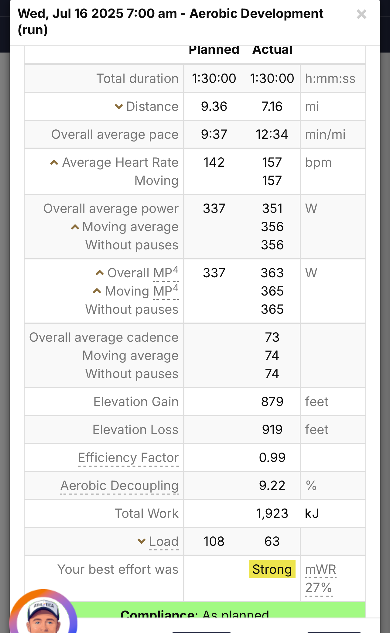 Recently, I travelled to hilly/mountains from flat lands of Texas. Shorter, slower runs /bikes/hikes uphill hit so different. Neuromuscular load that I usually don’t get left me fatigued for 2-3 days. Athletica gave me only moderate load, but I know that the true load, was much higher. I’m ok with that because I understand that the models are not perfect.