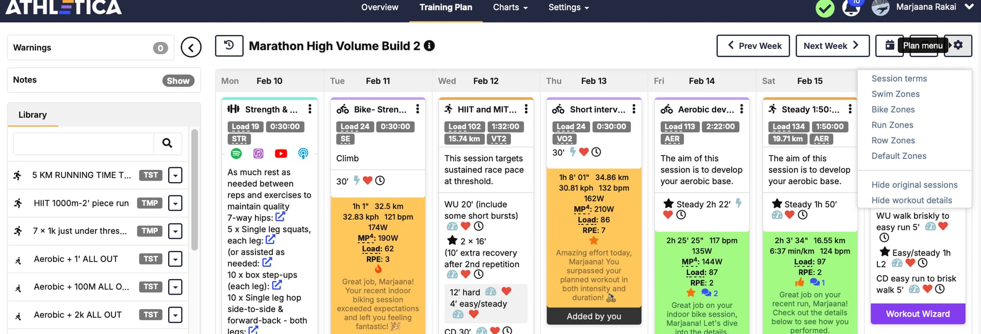 Also I am getting a lot of “session warning”. how should i interpret those? My situation is that after my marathon at beginning of December, for which I trained quite a bit and managed to complete in 3:16, i trained less and now starting to ramp up in preparation for the IM 70.3 in July. Should I trust this warning or focusing more on how I feel? Is there any way to provide feedback to the system about how I feel so the warning can disappear?