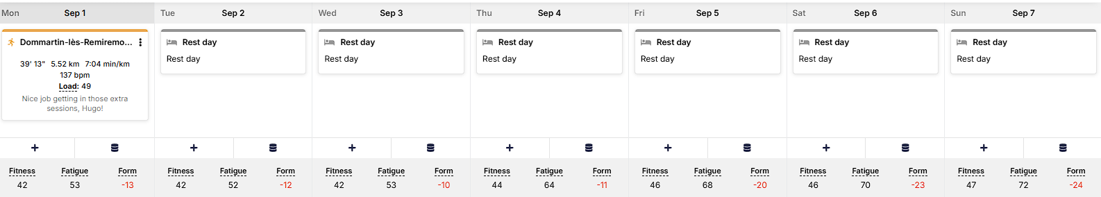 Hello, I don’t know if this is normal, but my fatigue and fitness levels are increasing even though I don’t have anything scheduled.