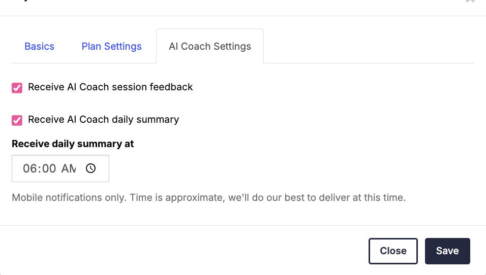 Thanks so much for the quick reply and pointing me to the settings. I’ve confirmed that the “Receive AI Coach session feedback” toggle is on.