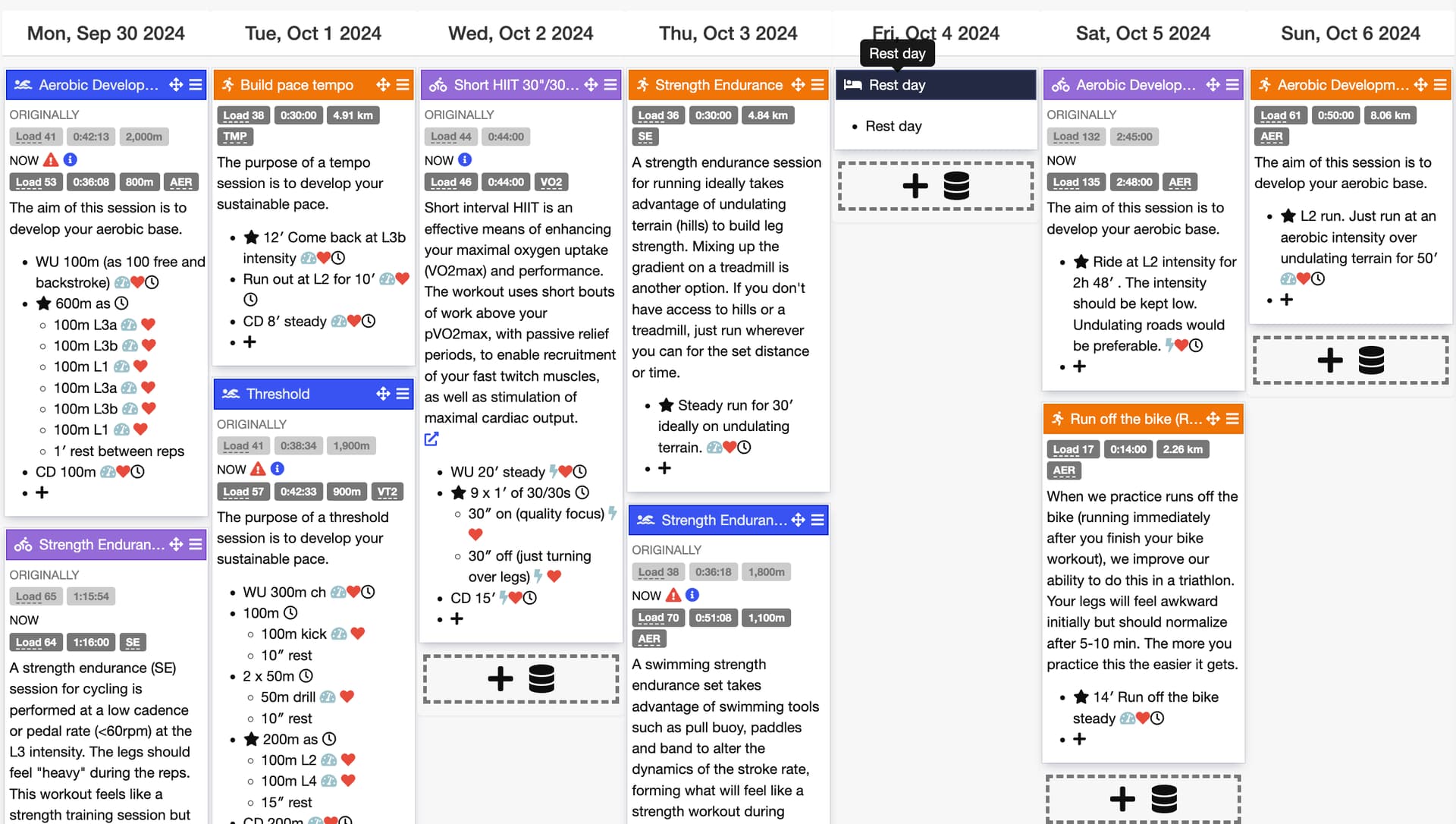 You’ll notice as you keep chugging along that the workouts change slightly based on what gets done, or not. So if you take a look at your plan 3 months forward from today, in the future; that week will look actually different in 3 months, based on what you have done. Does that make sense? The week three months down the road will change based on your training. It may not look like what you expect to get your ready for the Ironman Today, but as you get started and train, the plan will see, hey, Fabien is doing great, he can handle this, great, let’s give him a little more load🔥