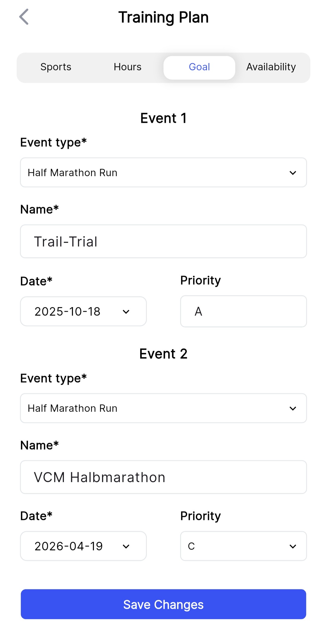 Now looking at the Android App, and the Training Plan / Goal the Priorities are completely different and do not match at all with the settings in the WebApp.
