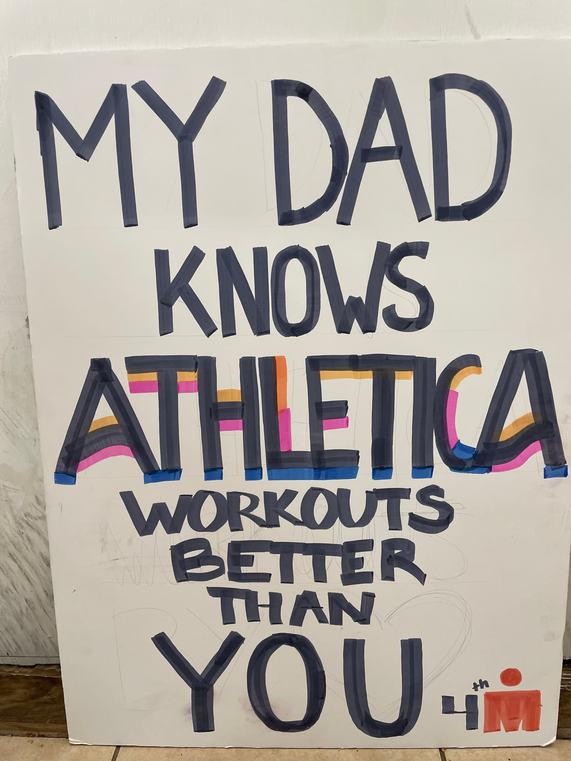 My daughter was here, and she created some fantastic signs on her own to motivate us and also advertised Athletica.