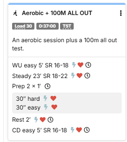 All the other days have an entry with a star and the actual testing segment, but for the first day with the 100m the main piece is missing from the workout instructions.