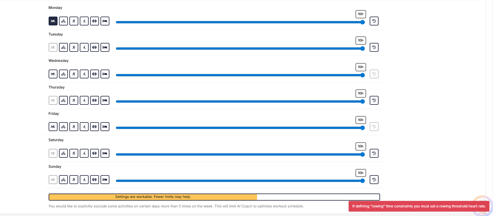 At the bottom the text says I’m excluding something 5 days of the week, I’m guessing it’s picking rowing as excluded for some reason. Is it possible to set this in some other setting? Maybe I’m missing something.