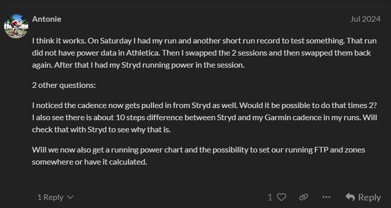 Still, it does not fix the stryd power sync from garmin and all previous runs which included power