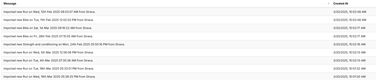 Below are screenshots of my Sunday run, Athletica.ai, Garmin, Strava and Intervals.icu