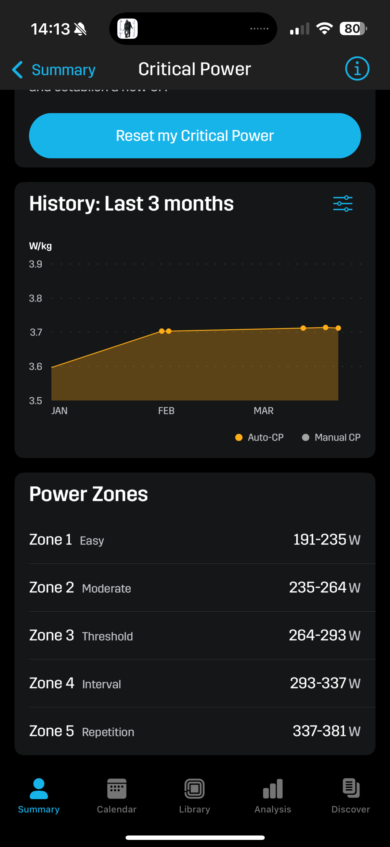 Sorry to pile on, I know there are a lot of other issues at the moment, but this happened again. I was wondering why my zones seemed so hard all of a sudden. My CP once again was auto-increased, from Stryd’s value of 274 to 323.