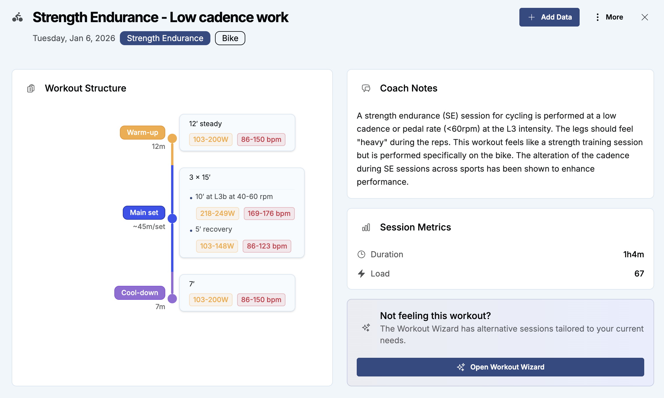 And a suggestion for Athletica: for me this change to the UI was entirely non-intuitive, so please make this information available somewhere. I had checked your support docs previously but found nothing to tell me that the actual name of a workout is now clickable text. Previously I always clicked on “…” in the top corner of the workout box and “Add Data” was one of the options presented directly there, so this new procedure is a significant change from before.