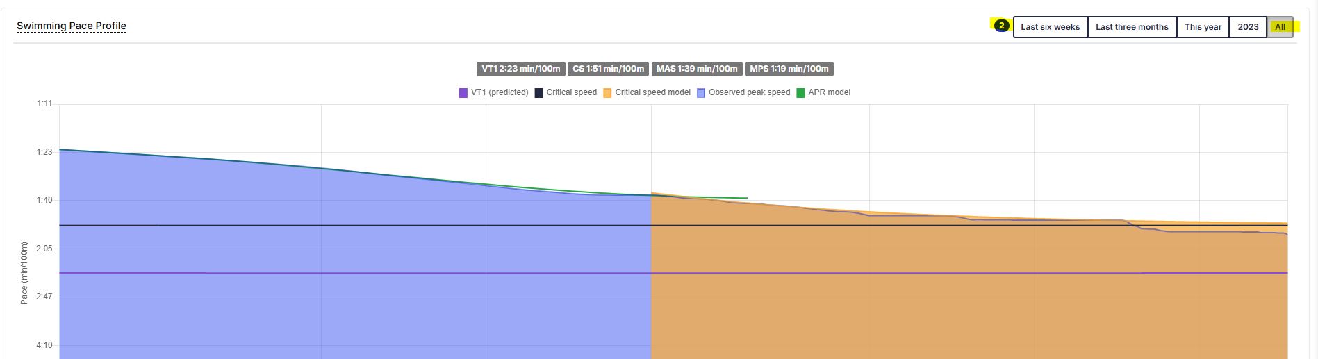 within my Athletica account I noticed that the swimming pace profile is not constructed for the following periods of time: last six weeks, last three months, this year and 2023.