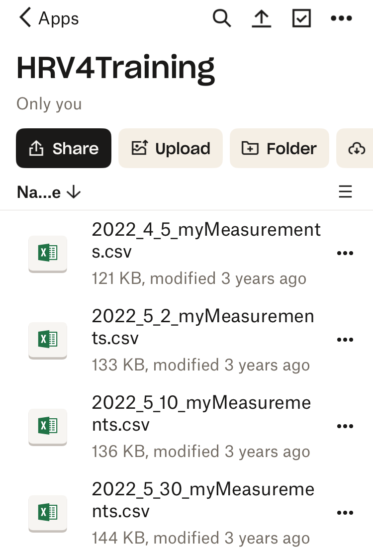 Okay, so the only extra bit you need to do is data export → upload to Dropbox from the HRV4Training app after a new reading. I suppose you could also upload every other day or weekly depending on preferences.