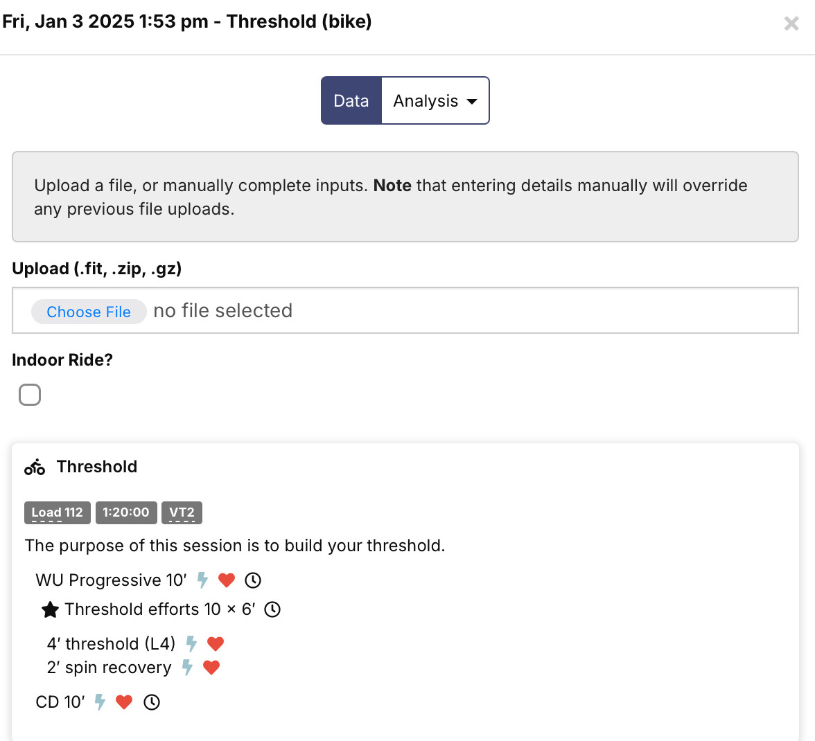 If I’m on my cycling power chart and I tap it to see the tooltip (for max power observed) as you have to in Safarai on iPad. Then it will open up a workout in the mode for adding comments or uploading a file manually.