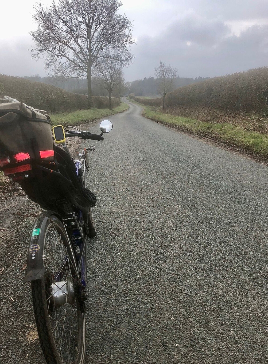 Started misty, but sun burnt through into a pleasant morning. Roads damp, but just one flood that hasn’t yet receded. Another mild day and windproof and gloves carried but not worn.