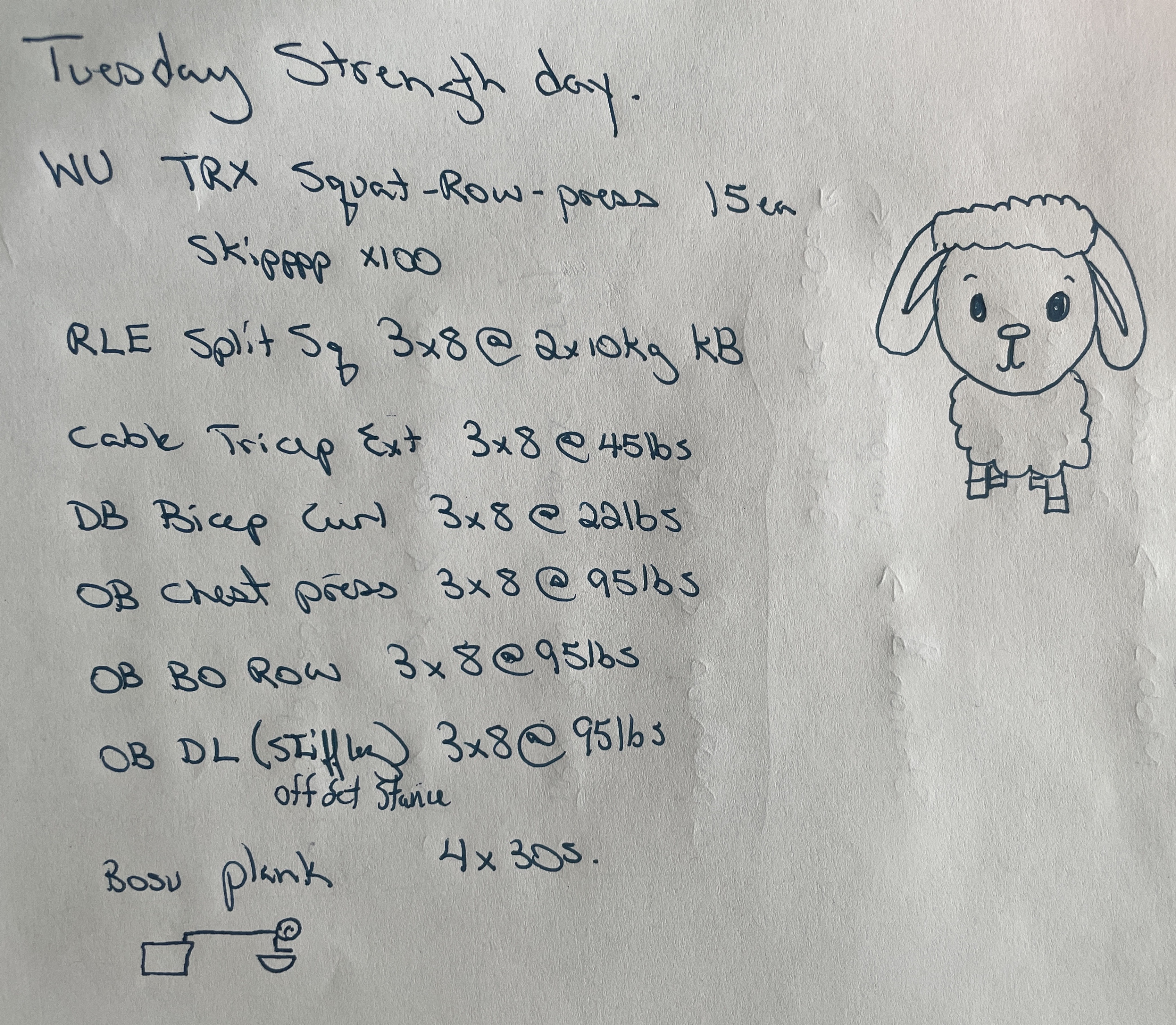 Yesterday’s strength session didn’t leave me as sore today, making the session easier.