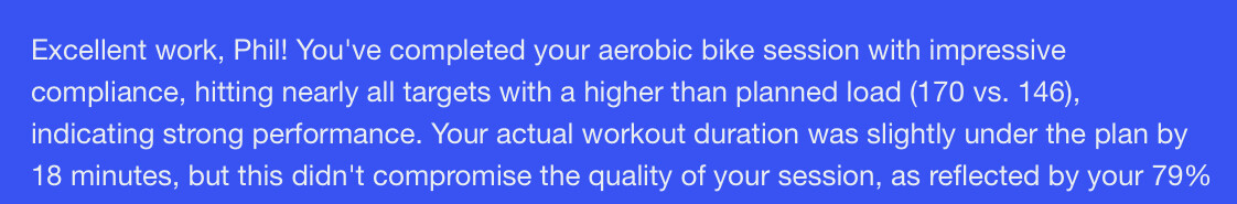 The whole point of the AI is that you don’t need to stick rigidly to the plan put forward. Want to do some unscheduled Z2 today as you have nice weather and the time? Then get it done, and let the Athletica engine figure out how to keep you on track.