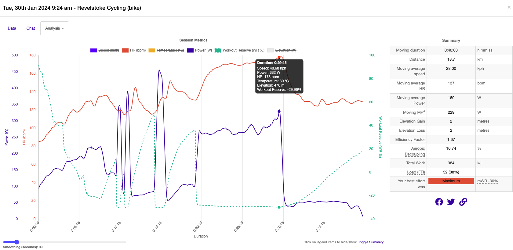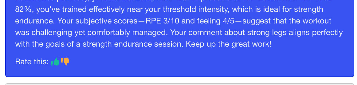 A strength endurance session of 5 x 10 min intervals. Another storm is brewing and was windy out earlier, but makes you feel alive. Forgot my heart rate strap , whilst I don’t look at HR during these sessions, nice to see it with power after. mWR of 13% , a strong effort but leaving some in reserve. AI coach seemed happy with my session, as was I.
