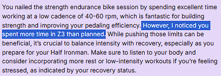 I just finished a strength training session and the trainer told me that I spent too much time in Z3.