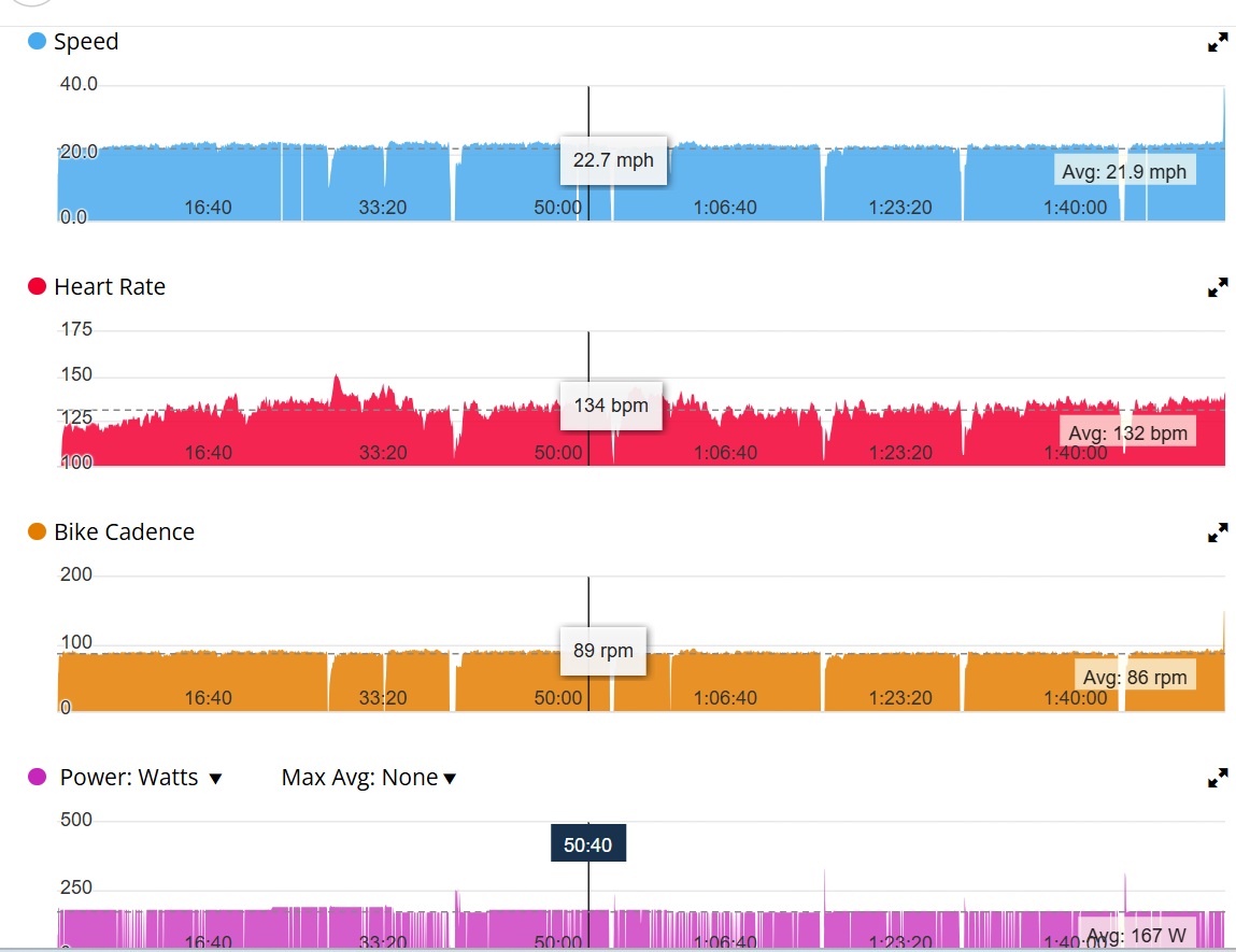 Somehow, Athletica thinks the average power for the ride was 139W, MP4 was 147W. I did not break up the ride or take prolonged breaks, about every 20 minutes I paused pedaling for 10-15 seconds in order to sit up and reposition myself.