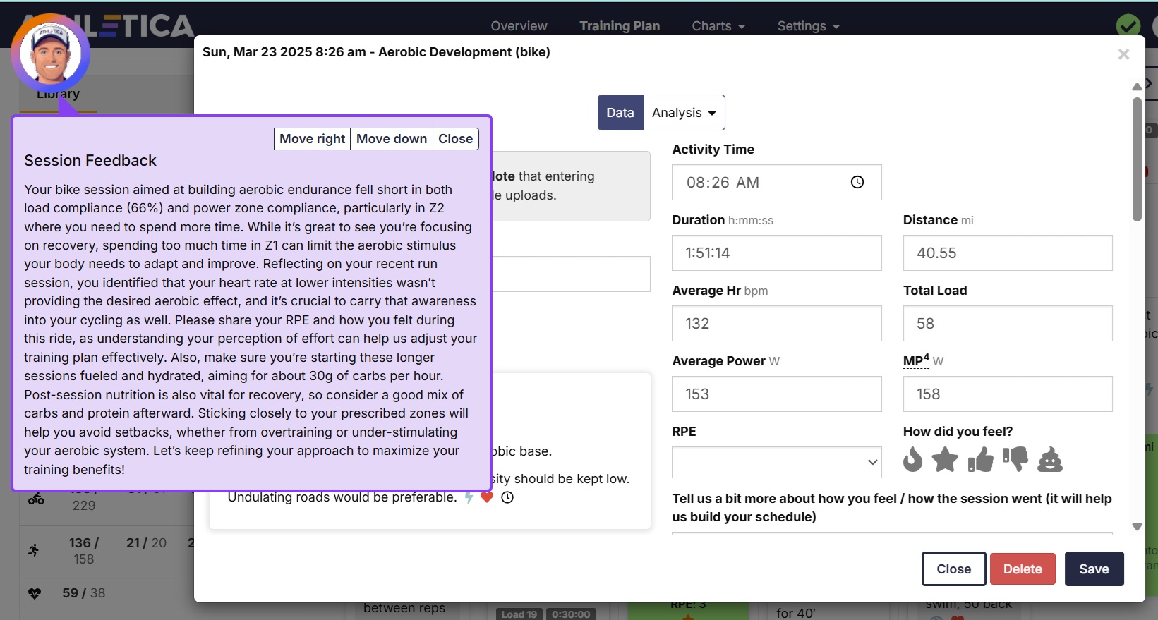 Hi @ethilo… sometimes there is a delay in syncing and analysis between Garmin and Athletica backend (parsed data plus Athletica brain). Going into your account I note that Athletica reads your average power as 164w. Please check your end.