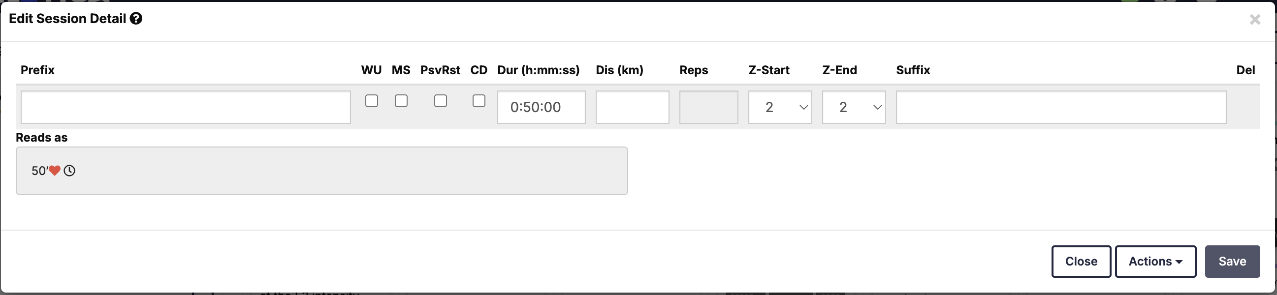 But you can see from this screenshot, that the duration and “reads as” both show 50. If I close this, it will remain at 45 in my training plan. If I hit Save again, instead of Close. It will work. You can see that workflow in the .mov.