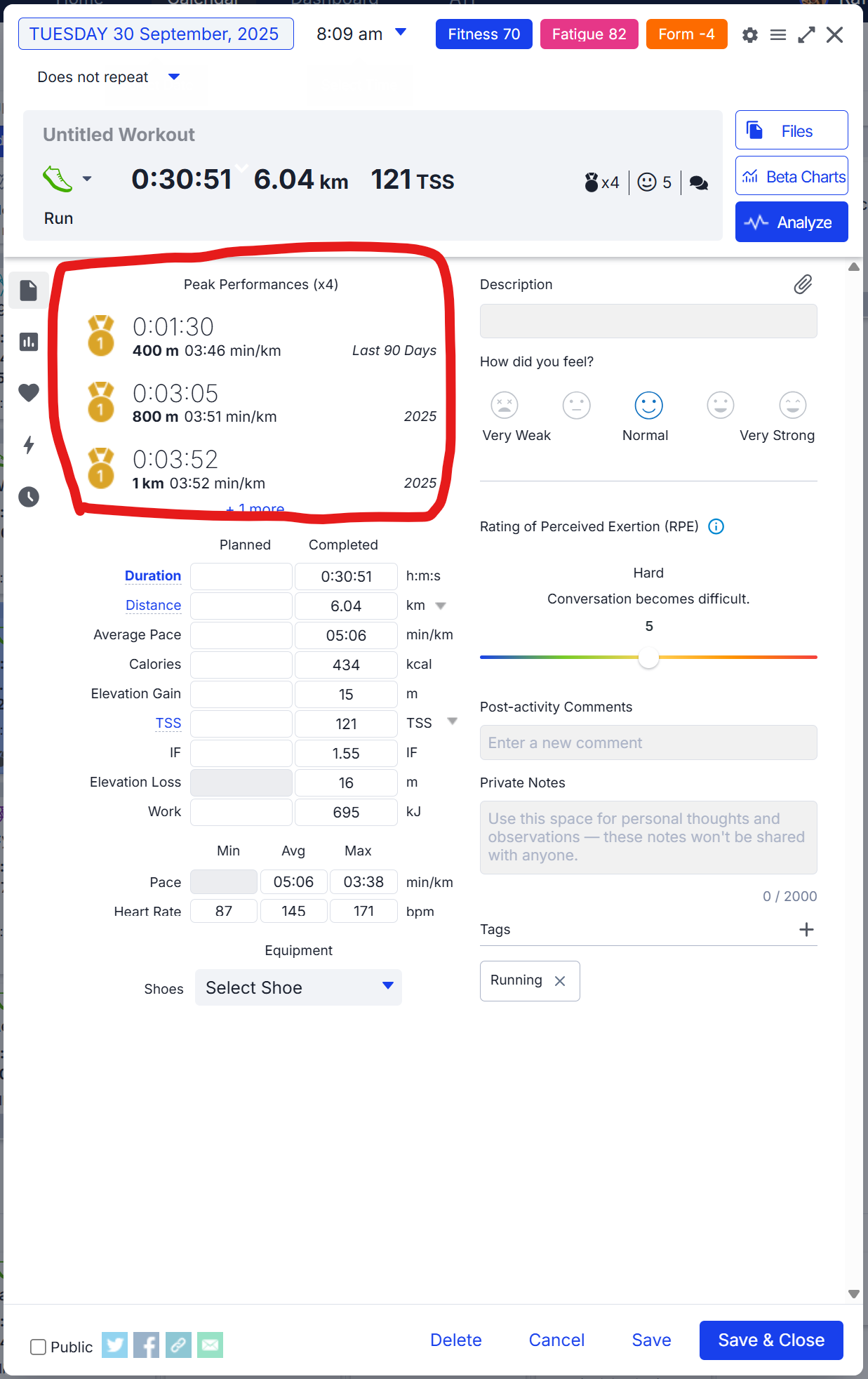 For example today I was set a 400m + 1k time trial and at the end of the workout I came back expecting to be able to see my attainment across those 2 distances but can’t see an easy way to see it - whereas on Training Peaks it’s literally called out prominently.