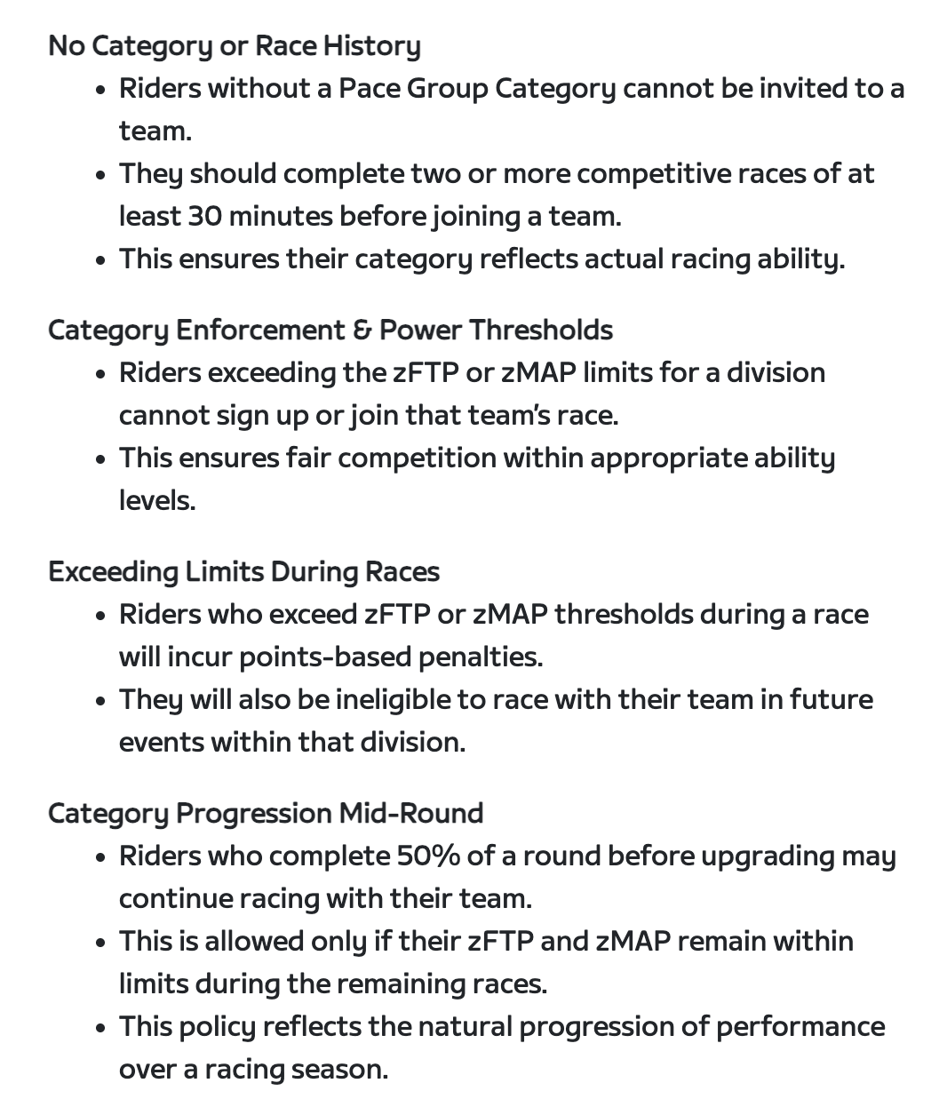 Awesome, @cgamio ! First steps are to register (if you have not already) at zwiftpower.com, using your current Zwift credentials. You’ll need to be category C or lower in order to race with the team. You’ll also need to send your Zwift ID to @Marjaana so that she may add you to the team.